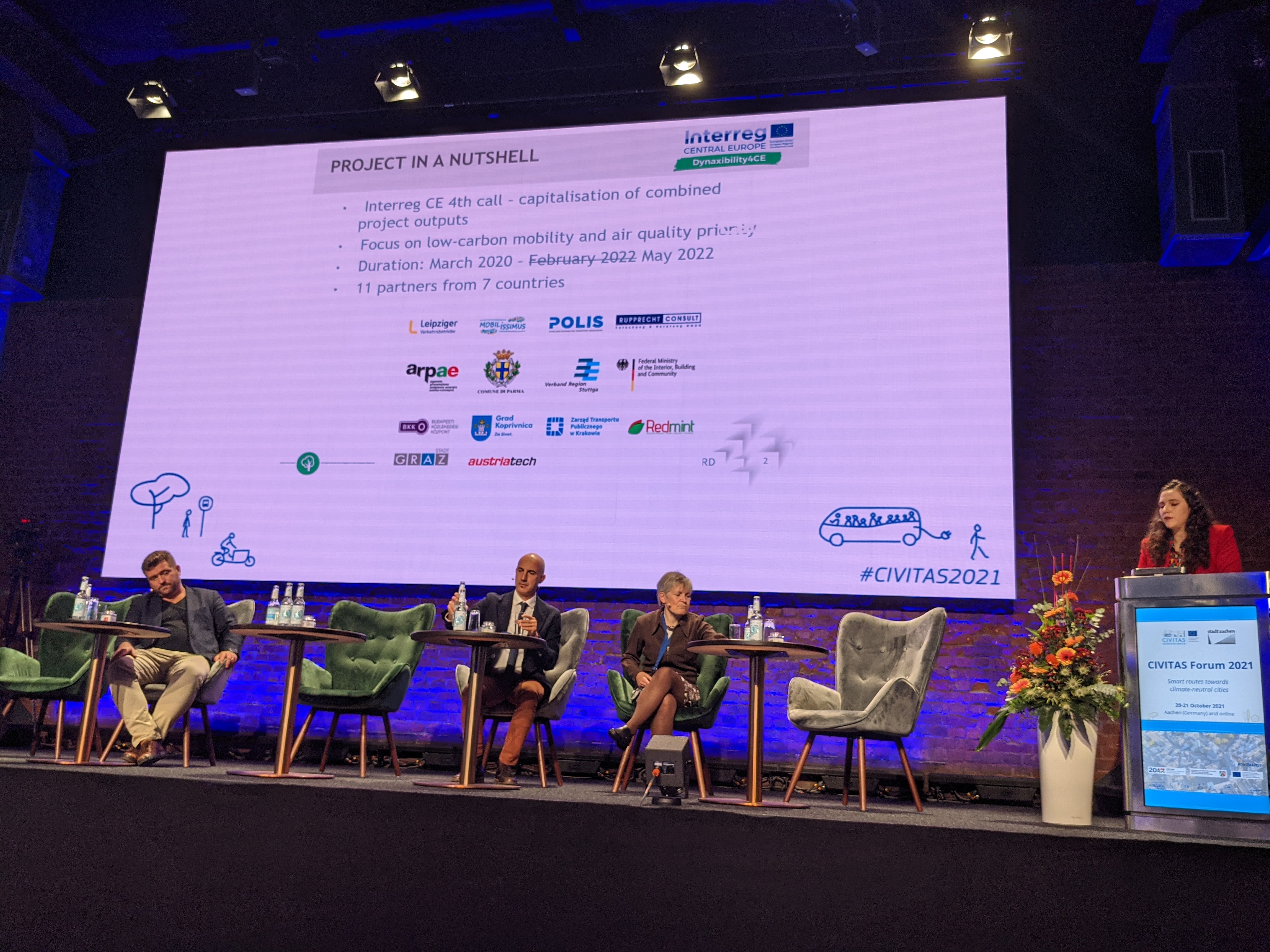 Dynaxibility4CE was prominently featured during the 2021 edition of the CIVITAS Forum, which took place on the outskirts of the historic city center of Aachen. The German city and birthplace of Charlemagne greeted around 200 stakeholders from the wider CIVITAS community during one of the first post-pandemic mobility events in Europe. Besides an information stand at the shared exhibition space, Dynaxibility4CE was also represented in a session about urban vehicle access regulations.