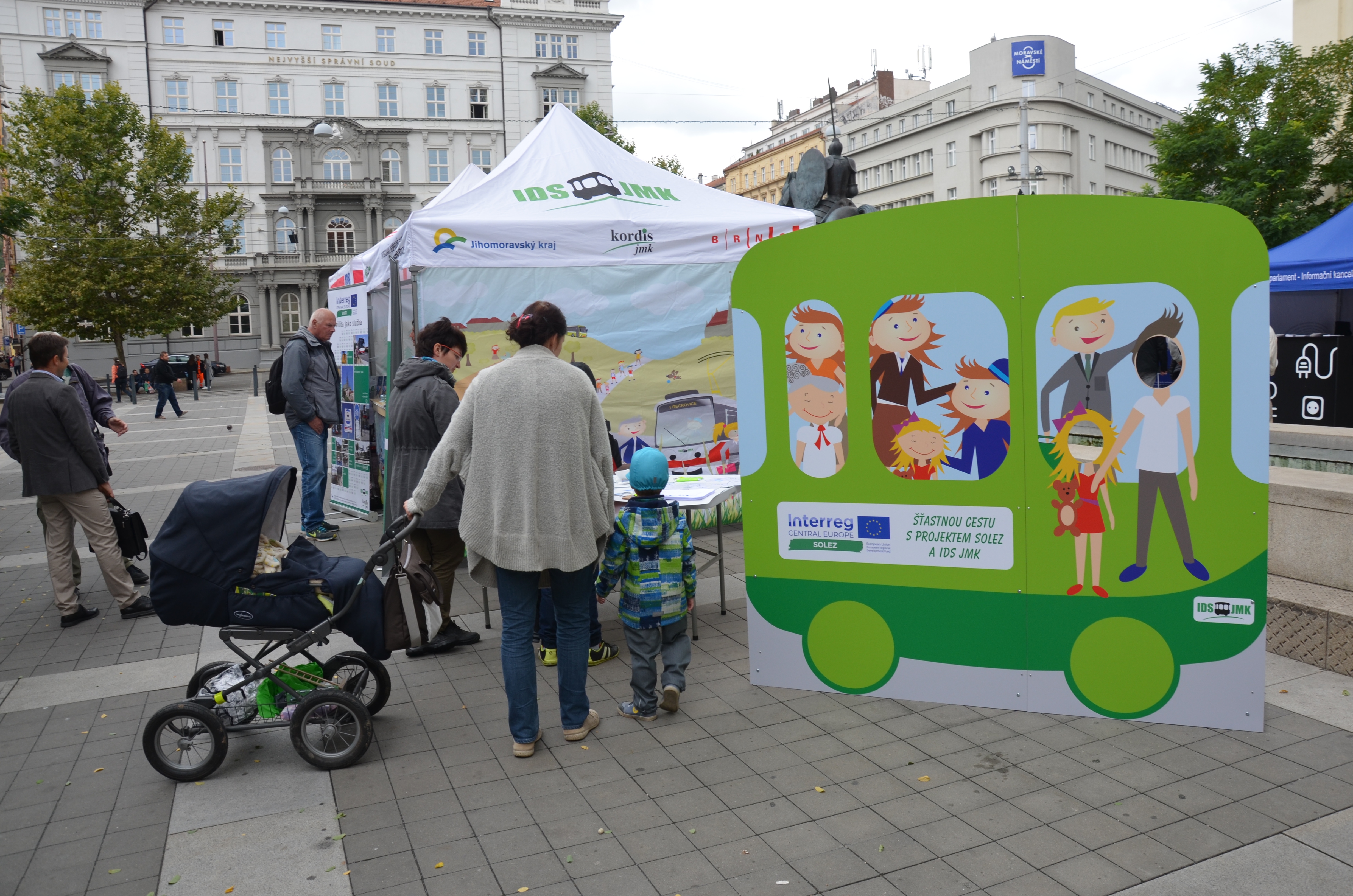 On Tuesday 19th September, people in Brno came and had fun at KORDIS JMK stand within the European Mobility Week. Visitors of the Brno city centre who passed by the stand could find out useful information on the public transport in the South Moravian Region and get to know details about existing Park and Ride facilities. While children were entertained with playing game of pairs, adults were invited to answer a Trivia Quiz which was focussed on low-carbon mobility policy.